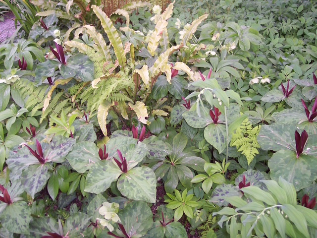 The fern collection consists of 82 genera, 370 species (including subspecies and varieties), 29 undetermined, 30 nothospecies; and 936 clones. Ferns can be viewed in a wide range of cultural conditions in the display gardens from full shade to full sun, from wet sites to dry. A significant number of ferns are evergreen so even a winter visit would be worthwhile. The display collection is the source of spores and other propagules for production for Plant Delights Nursery, which in turn supports Juniper Level Botanic Garden. The gardens are maintained by a core of skilled gardeners and volunteers and are designed to be aesthetically pleasing.