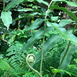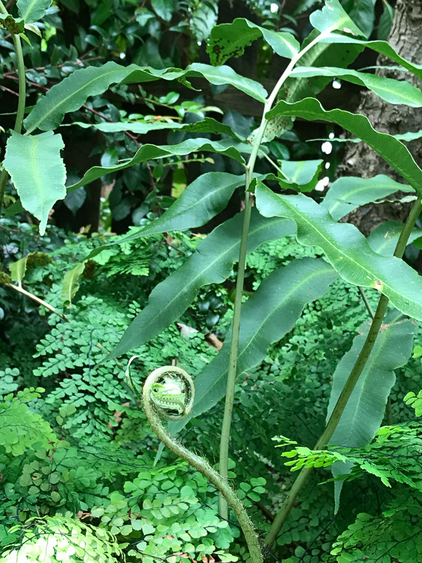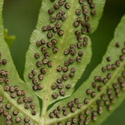 This slow colonizer—with its leathery and subtly blue fronds—likes to spread in dappled woodland shade. Once established, it’s quite drought tolerant, and it has a marked preference for heat. New fronds appear later in the season.