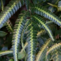 Dark, dusky – 85 species – temperate and tropical; rigid stiff stipe and frond; evergreen; often with powdery or waxy coverings; stipe dark purple; foliage usually blue; simply divided; rock ferns with long wiry roots; sori marginal; continuous under rolled edges of pinna.