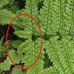 Sori: around the outer edges covered with a false indusium of curled segmentsAdiantum Fern Charact 2 Adiantum Fern Charact 1 - ARACHNIODES