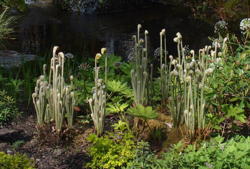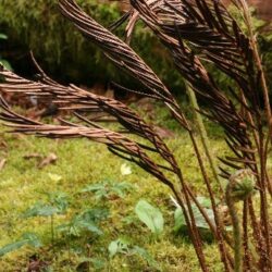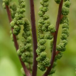 Onoclea – 6 species – Northern hemisphere and Central America; terrestrial – common name: ostrich fern, sensitive fern, now contains species formerly in MATTEUCCIA and PENTARHIZIDIUM