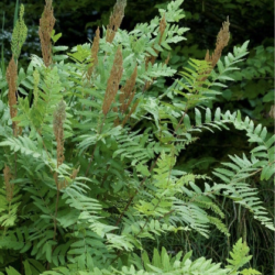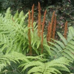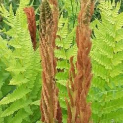 Fronds: deciduous, large, moisture loving; tufts of reddish hairs in the pinnae axils; fertile fronds wither soon after maturity dimorphic