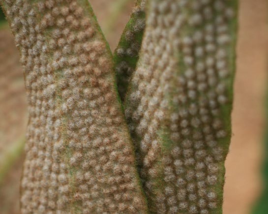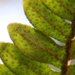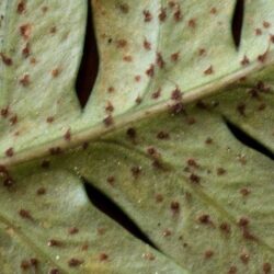 Fronds: pinnata; very similar to Polypodium but can be separated by the peltate scales covering the back of the frond monomorphic